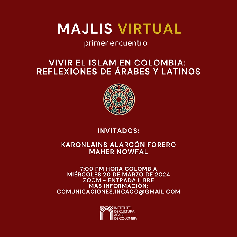 El Majlis del Instituto es un espacio virtual mensual abierto sin costo donde se abordan temas relevantes y actuales sobre el mundo árabe y sus diásporas en las Américas. Desde el Instituto de Cultura Árabe de Colombia queremos incentivar un espacio donde nos dispongamos a entablar diálogo respetuoso y abierto con otras personas con perspectivas diferentes.