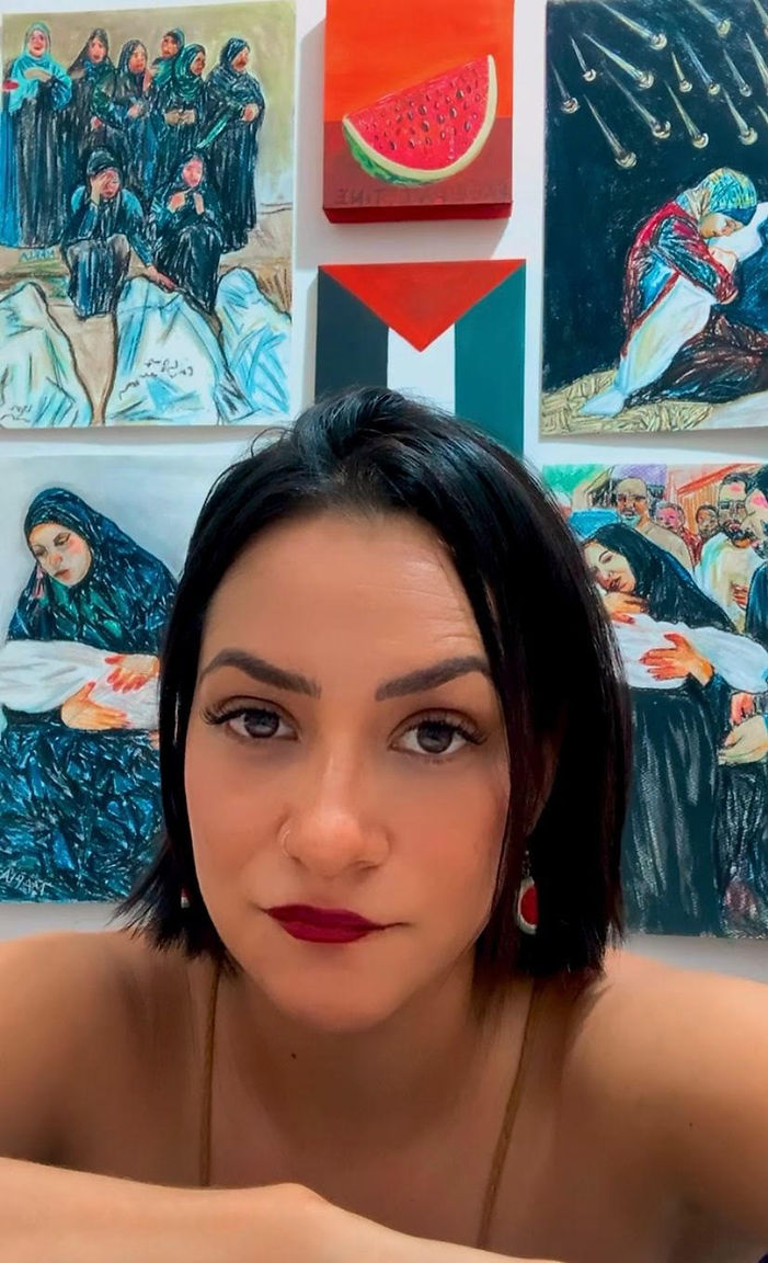 Marla Caicedo es una artista plástica y pintora-muralista, egresada del Instituto Popular de Cultura de Santiago de Cali (Colombia) en 2013, quien como humana, ha vivido lo frustrante y doloroso que ha sido presenciar la violencia desmedida contra el puelo palestino.