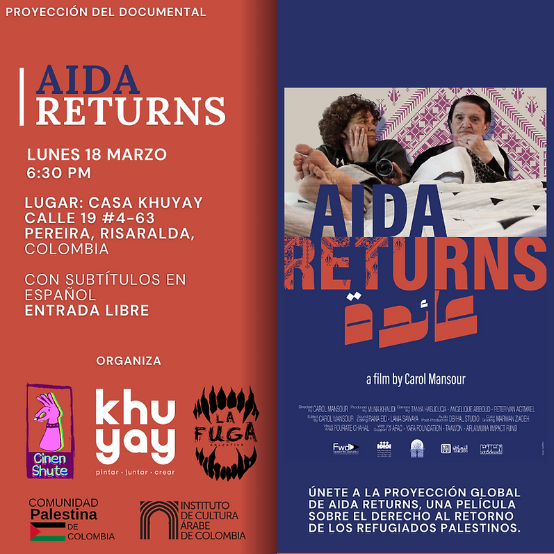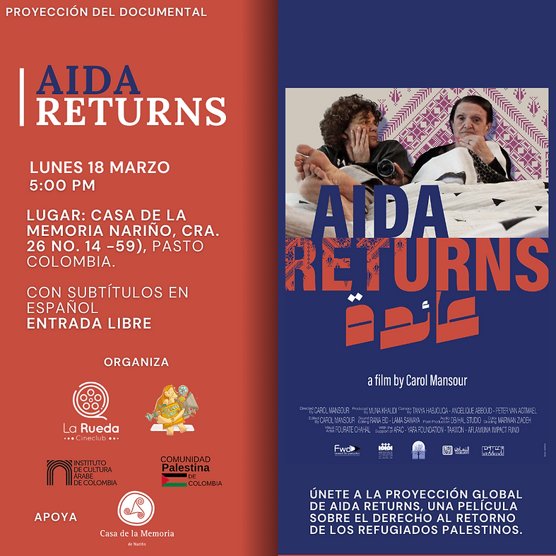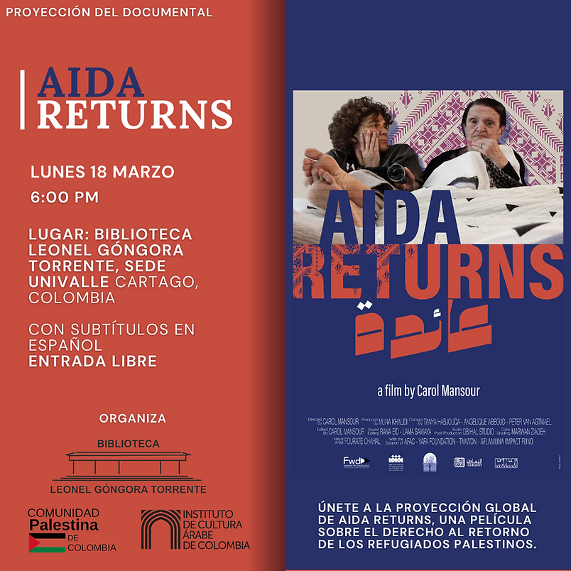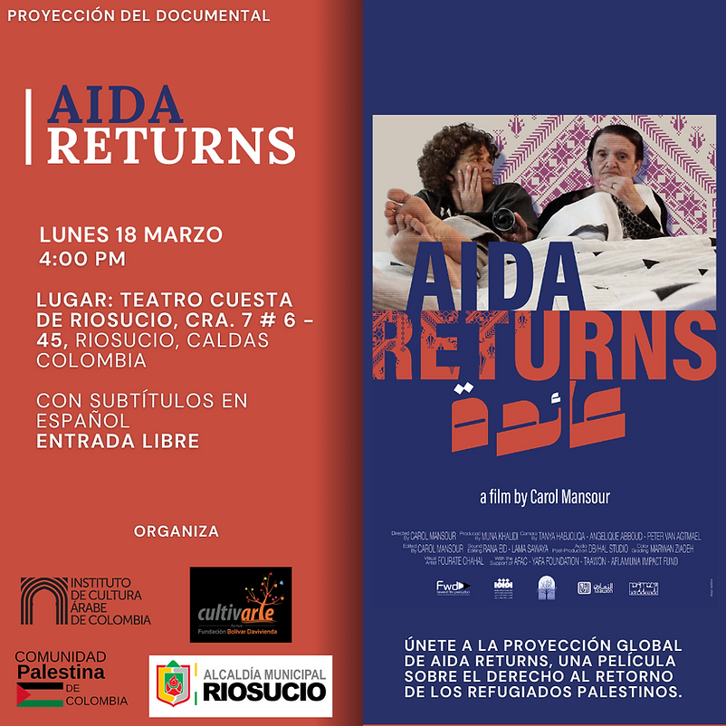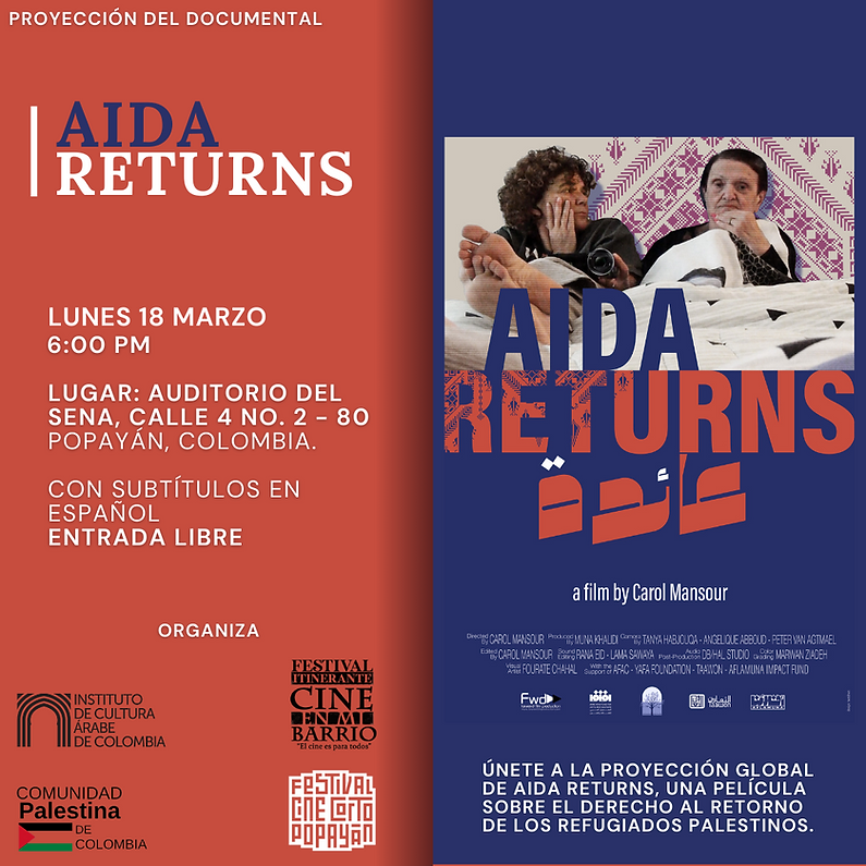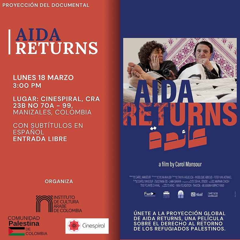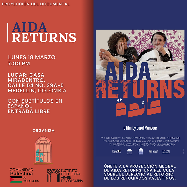 El Instituto de Cultura Árabe de Colombia se complace anunciar que, con el apoyo de la comunidad palestina de Colombia y de varios socios locales, hemos atendido un llamado desde Beirut para unirnos a la campaña global para proyectar la nueva película palestina «Aida Returns».