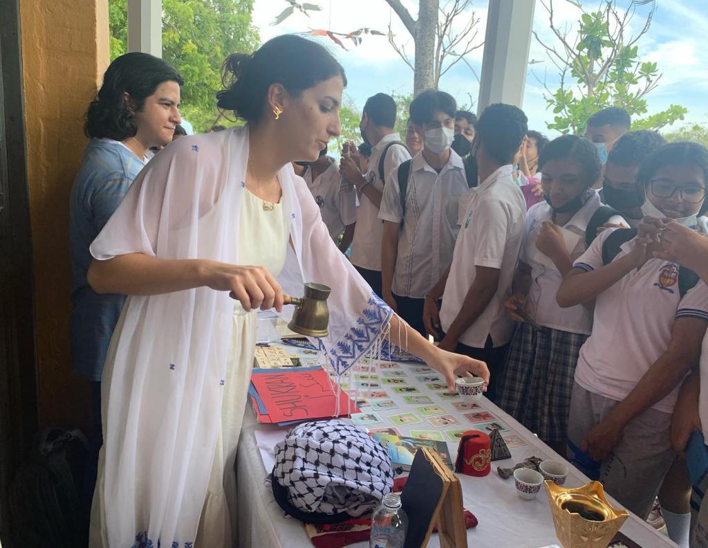 Con el apoyo de objetos cotidianos y artefactos culturales árabes, llegamos a centros educativos y otros espacios para interactuar con niños, jóvenes y/o adultos, con el objetivo de acercarlos al mundo árabe desde los sentidos, las experiencias y la reflexión. Exploramos la diversidad de esta fascinante región del mundo a través de actividades interactivas guiadas relacionadas con el idioma árabe, tradiciones culturales, historia, gastronomía, danzas, música, personajes, olores, literatura y vestuarios de algunos países árabes. Nos motiva encontrar puntos comunes y de encuentro entre las culturas.